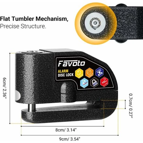 【Alarme de détection de vibration】- Les verrous de disque présentent de nombreux avantages, le plus important étant qu’il dispose d’une alarme de détection de vibration. Avec une puce intégrée, il déclenchera une alarme forte (110 dB) ce que les autres verrous ne peuvent pas faire.