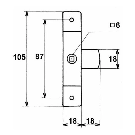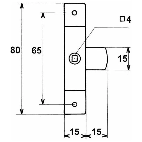Batteuse en applique acier sans gâche. Platine 15×80 ou 18×105. Fouillot laiton carré de 4 ou 6. Pêne à poussoir ressort.