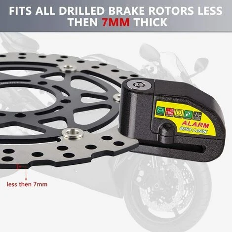 Cet bloque disque avec alarme de 110dB, Ce antivol moto est muni d’un capteur, le système d’alarme de 110db fait fuir les voleurs potentiels!