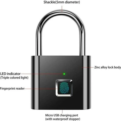 Reconnaissance d’empreintes digitales : technologie de reconnaissance en temps réel pour éviter efficacement la copie d’empreintes digitales. Il peut stocker jusqu’à 10 empreintes digitales, ce qui permet aux membres de la famille de partager facilement les verrous sans clé de rechange.Matériau de haute qualité :Le cadenas à empreinte digitale est en alliage de zinc,résistant à l’usure, anti-chute et anti-poussière.
