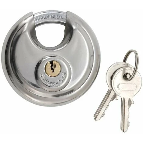 Cadenas circulaire de sécurité ; Diamètre = 70mm ; Matière = Acier inoxydable ; Antirouille, résiste aux intempéries ; Avec 2 clés ; Utilisations variées, intérieures comme extérieures