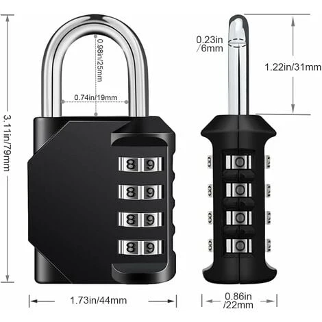 LARGE APPLICATION : La combinaison de cadenas est parfaite pour les tâches intérieures et extérieures telles que les casiers de gym, les casiers des employés de l’école, les canbinets, les garde-manger, les boîtes à outils, les moraillons de porte, les garages, les remises, les clôtures et le stockage général. NOTE: Il s’agit d’un cadenas à chiffres de grande ou moyenne taille (1,73 x 0,86 x 3,11 pouces, diamètre de l’anse : 6mm), pas vraiment adapté aux trous de fermeture éclair.