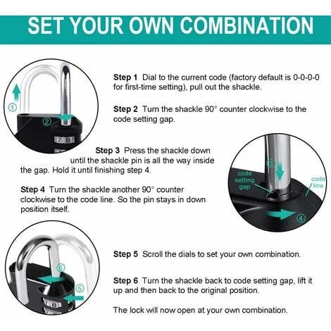 DÉFINISSEZ VOTRE PROPRE COMBINAISON : Le cadenas à combinaison à 4 chiffres met 10 fois plus de temps à se fissurer qu’un cadenas à 3 chiffres. Vous pouvez définir votre propre combinaison avec 10 000 options uniques dont vous savez qu’elles sont plus fiables et plus sûres.