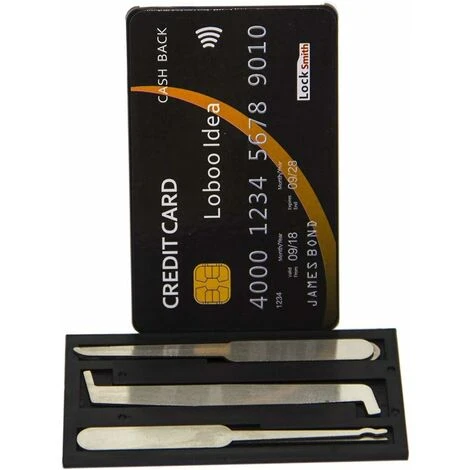 - Portable. Cet incroyable ensemble de choix de serrure de 5 pièces se présente sous la forme d’une carte de crédit. Cela signifie qu’il peut facilement s’intégrer dans votre portefeuille pour les besoins de tous les jours.