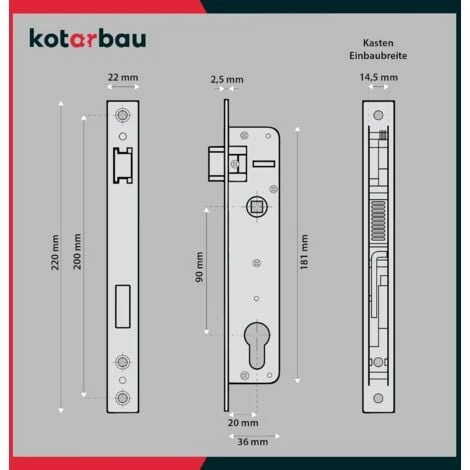 - Caractéristiques techniques : entraxe : 20 mm, espacement : 90 mm, hauteur : 181 mm, longueur totale : 220 mm, profondeur : 36 mm, largeur : 2 mm, épaisseur de l’acier : 2,5 mm, tige carrée : 8 mm, design : cylindre profilé, matériau : acier, surface : galvanisé, couleur : argent, sans cylindre de fermeture, poids : 419 g.