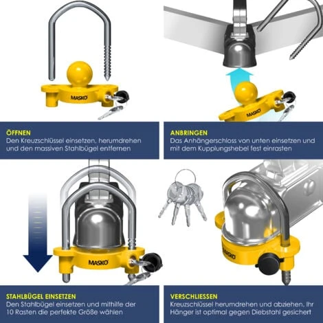 MASKO Cadenas de remorque, stable et sûr grâce à des matériaux de haute qualité et une construction robuste, idéal pour les remorques et les caravanes, convient à tous les attelages de remorque courants cadenas de remorque.