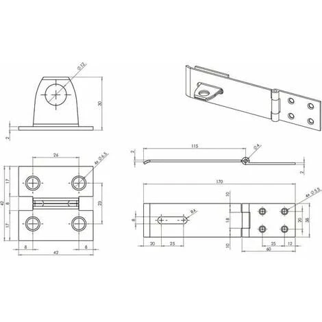 Moraillon de sécurité ; Système à charnière ; Matière = Acier zingué ; Dimensions une fois fixé = 115 x 40mm ; A visser (vis non incluses) ; Fixations masquées pour plus de sécurité