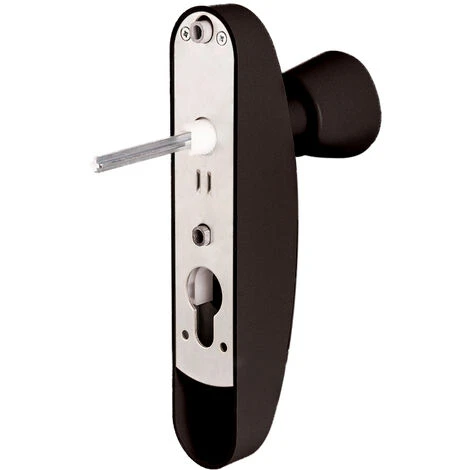 La poignée à bouton fixe est verrouillable. Le mouvement du pêne est assuré exclusivement à l’aide une clé.