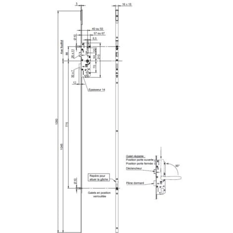 - Serrure à 4 points de fermeture par 3 galets et 1 pêne dormant.
