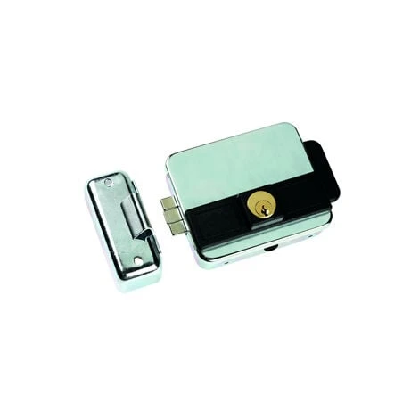 Serrure électrique pour portes et portails, Pêne demi-tour autobloquant, cylindre fixe, ambidextre, gâche réglable en hauteur, axe simple réglable de mm, 50 à 70, 3 clés, galvanisé, Tension 8/12 V ac,