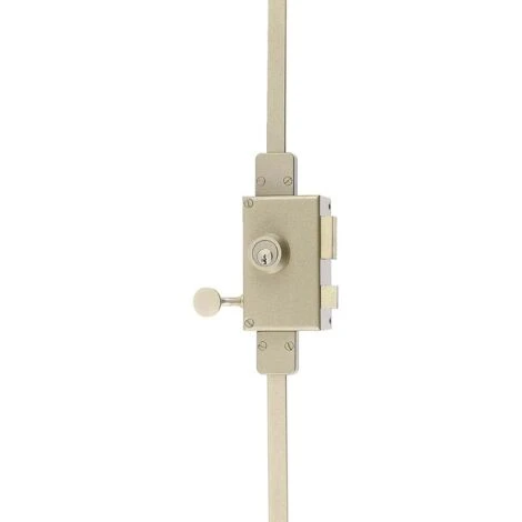 Pêne demi-tour réversible à équerre. Cylindre 5 pistons de Ø 23 x 45 mm numéroté. Gâche du haut équerre à rouleau. Gâche du bas platine à rouleau.