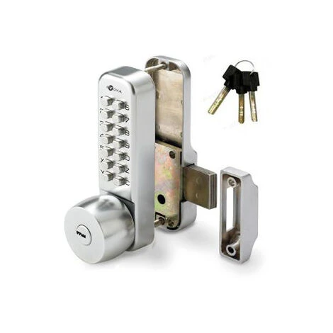 Verrou à code unique et clé pour filtrage des accès. Le verrou peut être ouvert par code ou clé.