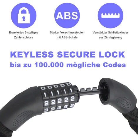 √ Utilisation du verrou à code–Longueur parfaite. Une longueur suffisante est idéale pour protéger les vélos, scooters ou autres objets contre le vol. N’est pas affectée par la température.